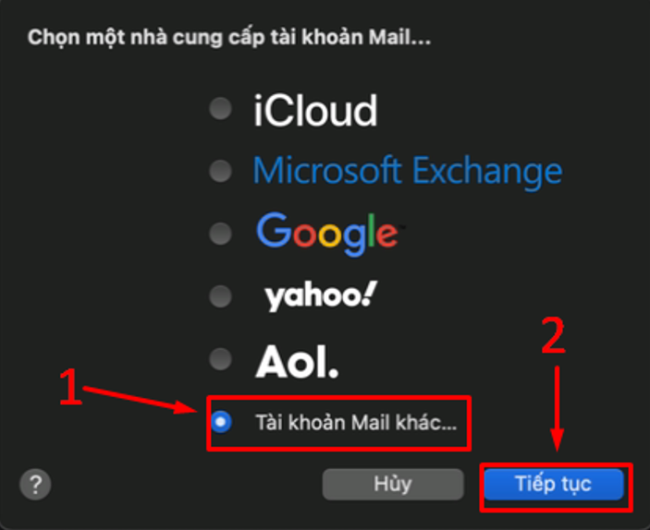 Chọn hệ thống Mail mà bạn đang sử dụng, ở đây BizMaC sẽ chọn Orther Mail Account…